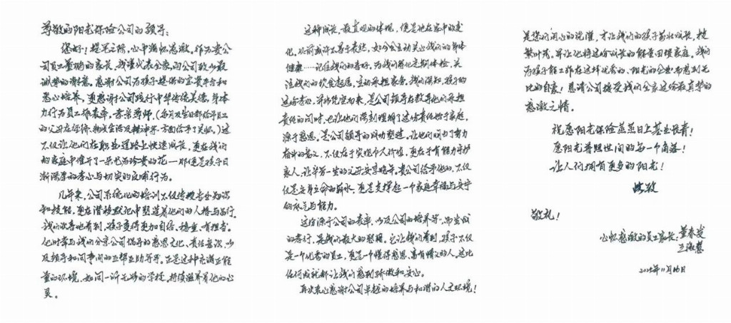 近日,在阳光人寿河北分公司成立十六周年之际,一封字迹工整、情意绵长的感谢信送到了分公司柜面。这封由员工父母手写下的“家书”,成为阳光“爱与责任”企业文化的珍贵印记。