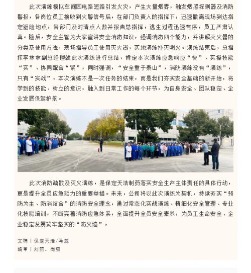 以演促练补短板,以练提能守平安–保定天浩制药开展应急疏散与灭火演练
