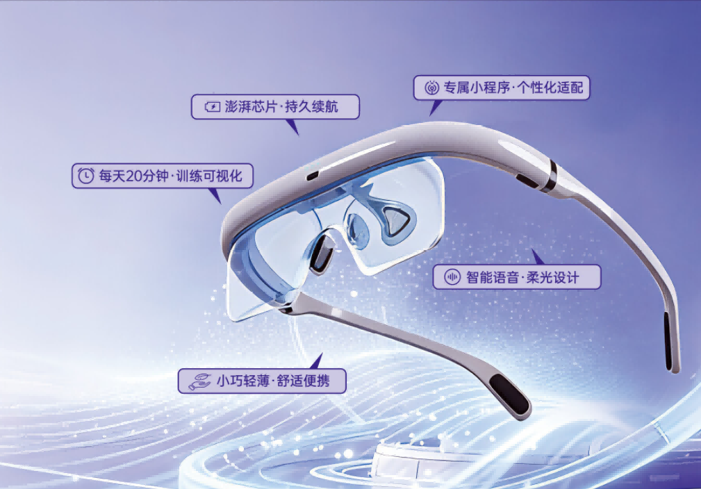 核心技术突破体现在自主研发的 “动态屈光视觉训练技术系统” 。该系统实现了从传统光学镜片的“被动矫正”到“主动防控”的模式革命,通过AI算法实时调节光学参数,主动锻炼人眼的调节与集合功能,旨在提升视觉系统的生理潜能与抗疲劳能力。