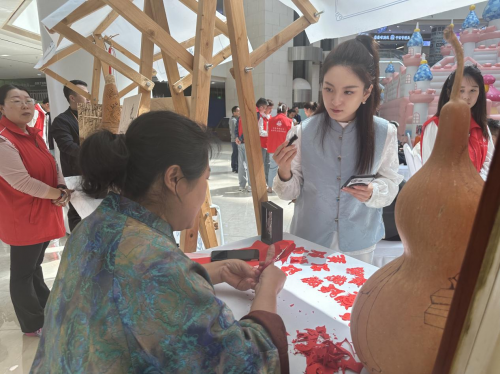 活动现场,乡村e镇的展位人气十足,各类特色产品琳琅满目。既有福同惠、南耀離等老字号糕点,传承百年工艺,承载着盐湖记忆;也有运康锅巴、本土水果脆等好物,以优质原料和精细工艺,满足不同人群需求,还有奇强系列日化产品,全方位覆盖日常家居清洁需求。与此同时,展位内特别设置非遗专区,陈列着剪纸、葫芦等特色非遗展品,与各类特色产品交相辉映,共同成为现场市民争相关注的焦点。
